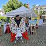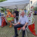 Das ist neben dem hochwertigen Angebot vor allem Pauline Kugler zu verdanken, die durch ihre spontane, unkomplizierte Art, auf Menschen zuzugehen, es erneut schaffte, die Besucher zu begeistern. So zum Beispiel mit ihrem bunten Flügelstuhl, auf dem man sich mit einer Polaroidkamera und entsprechendem Kunst-Hut ablichten lassen konnte. Dies nutzte sogar Bürgermeister Pesch, der schon früh kam und sehr angetan war von der Vielfalt des Events.