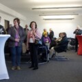 Erstmals übernahm Fabian Schüring als Juniorchef des Unternehmens die Einführung und schaffte es, eine persönliche und positive Atmosphäre zu schaffen, bevor Bürgermeister Klaus Pesch das Mikrophon übernahm. Er hatte es sich trotz vieler anderer Termine an diesem Sonntag nicht nehmen lassen, die Vernissage zu besuchen und fand einen persönlichen Zugang zu dem Thema, indem er spontan die Zahl Acht mit dem Wort „Achtsamkeit“ verknüpfte.
