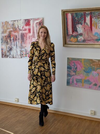 Alina Fenn, die vierte Künstlerin im Medienzentrum, legt den Schwerpunkt auf Emotionen. Ihre Bilder sind bunt, optimistisch und lebensbejahend – manchmal auch versunken in einer mädchenhaften Märchenwelt.