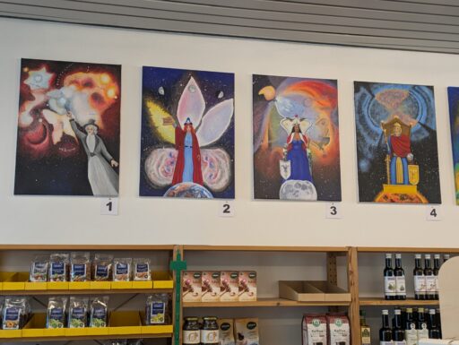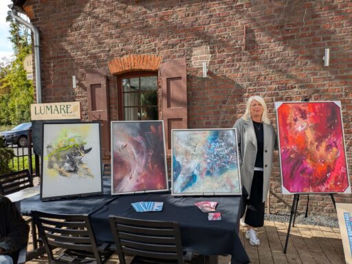 Ein ganz wichtiger Ausstellungsort für die Kunsttage ist ein besonderer Glücksfall. Er hat sich erst so spät ergeben, dass er gar nicht mehr in das Werbematerial aufgenommen werden konnte: ein neues Ladenlokal im Leerstand in der Lintorfer Straße. In Windeseile wurde es durch fleißige Hände zu einer stilvollen Galerie umgestaltet. Auch für einige Künstler, die aus unterschiedlichen Gründen nicht bei den Kunsttagen dabei sein konnten, ergab sich hier die Gelegenheit, ihre Werke zu präsentieren. So entstand nicht nur ein schöner Kunstort, sondern auch ein zentraler Informationspunkt für alle Fragen rund um die Kunsttage.