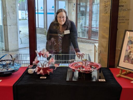 Elfi Lütcke, die in vielen Arbeitsstunden die Kunsttage organisiert und damit erst möglich gemacht hatte, stand hier für alle Fragen zur Verfügung.