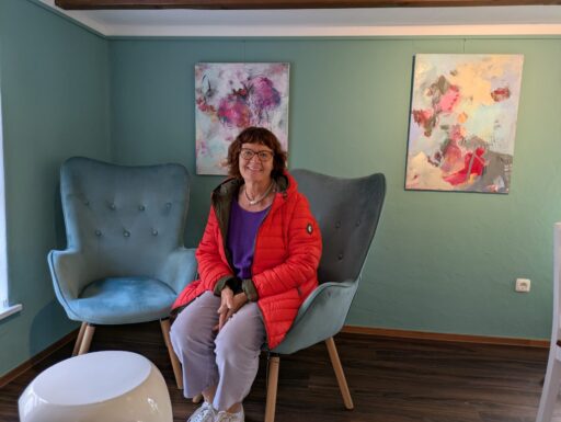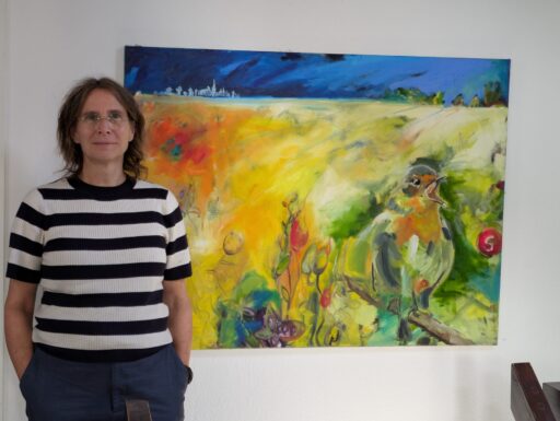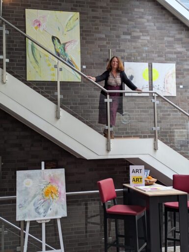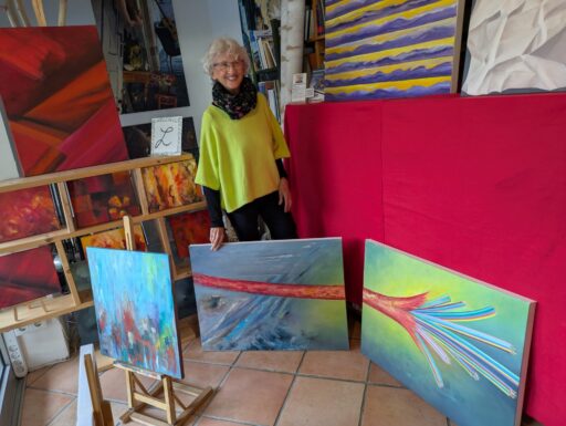 Ateliercharakter prägt das Ambiente von Andrea Lenzing in der Ratinger Marketing GmbH. Sie liebt Farben und die Natur. Ihre Werke entstehen im Prozess – wenn sich die Farben zu einem Ganzen fügen, ist das Bild für sie vollendet.