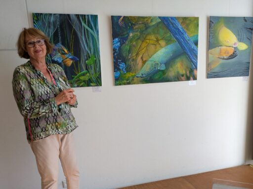 Auch im Medienzentrum spürt man bei den ausstellenden Künstlerinnen die Liebe zur Natur. Anita Esper malt bevorzugt im Freien. Ihre dynamischen, farbfließenden Landschaften lassen den Betrachter den Wind und die Witterung förmlich mitempfinden.