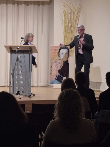 Als Dank und Symbol der Verbindung von Musik und Kunst überreichte Elfi Lütcke ein Ölbild mit einem Motiv aus dem Musical Phantom der Oper, an dem Herr Sevenich einst selbst mitgewirkt hatte.