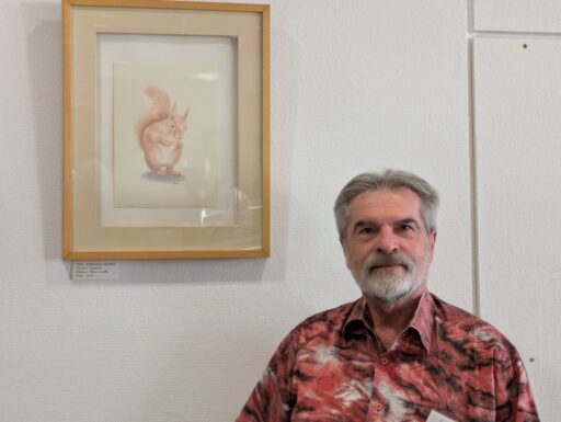 Rainer Scheffel widmet sich ebenfalls dem Tiermotiv. Seine realistischen Darstellungen blicken den Betrachter direkt an.