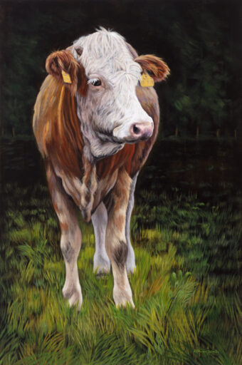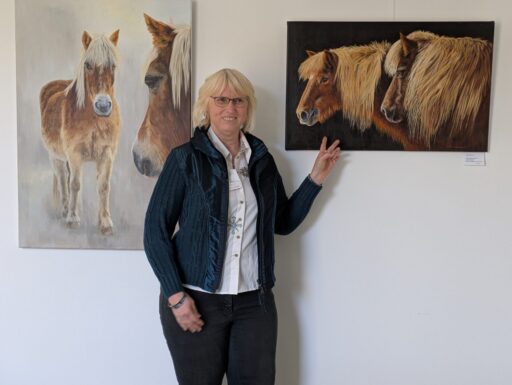 In den Arbeiten von Ursula Stüwe-Schmitz steht ebenfalls das Tier im Mittelpunkt. Pferde sind ihre Leidenschaft, zuletzt ergänzt um das Motiv Kuh. Vor jedem Bild setzt sie sich intensiv mit dem Tier auseinander, um sein Wesen zu erfassen. So entstehen keine bloßen Abbilder, sondern Charakterstudien voller Zuneigung.