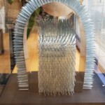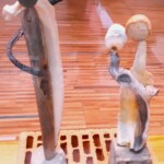 Auch bei Martina Carstens erzeugen Fundstücke eine kreative Umformung, wie z.B. bei ihrer Arbeit „Flower Amazonia“ aus Eisen und Holz, die viele Interpretationen ermöglicht. Gabriele Funk wiederum zeigt hier ihre professionell bearbeiteten Natursteinobjekte, die durch ihre glatte Oberfläche, helle Farbe und runden Formen bestechen.